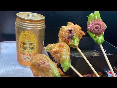 シシトウとタコの串揚げをハイボールでキメるだけの動画