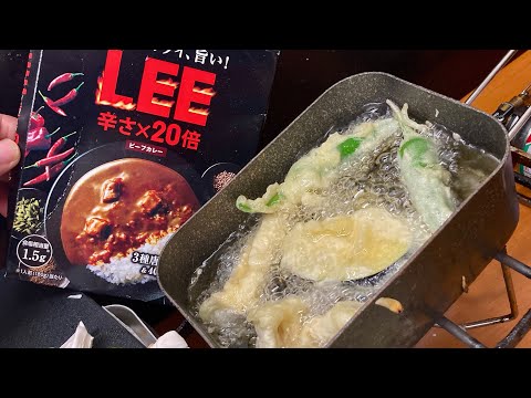 野菜の日だし、仕方なく夏野菜カレー天ぷらを揚げてハイボールをキメるだけの動画