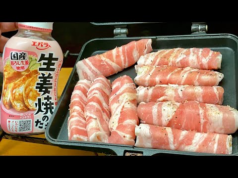 レンコン甘辛肉巻きとキムチ肉巻きを焼いてハイボールをキメるだけの動画