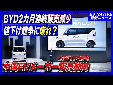 【速報】王者BYD、2ヶ月連続販売減少止まらず。待ち受ける課題とは?/2025年10月最新:BYD・ジーリー・シャオミ・ファーウェイ:販売速報レポート